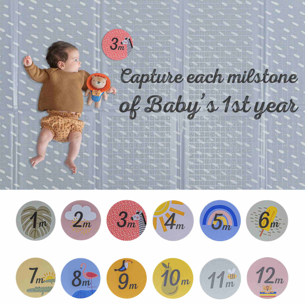 Ez a gyönyörû szõnyeg 6 db kétoldalas kártyát tartalmaz 12 hónapra – korhû mérföldkövek. Rögzítse a baba elsõ évének minden mérföldkövét.