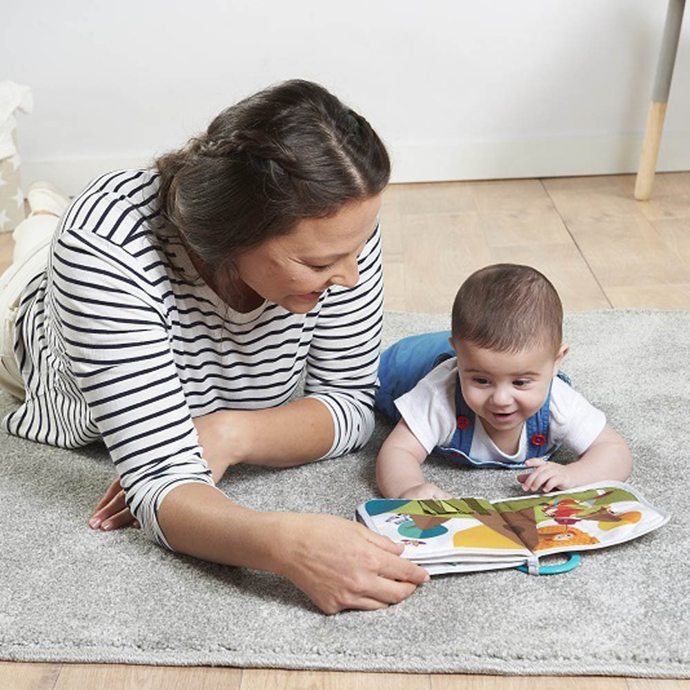 A Tiny Love Where I Do Travel Book Meadow Days puha könyvecske egy szuper, kedves kis állatkákkal illusztrált babakönyv, amely nagyszerû szórakozást nyújt 3 hónapos kortól kezdve. Minden oldalon vár valami nagyszerû meglepetés a kicsikre: egy pici tükör, saját arcának megismeréséhez. Tovább lapozva különbözõ érdekes figurák és anyagok a tapintás és finommotorika fejlesztéséhez és különbözõ textúrájú képrészletek. A puha babakönyv könnyen rögzíthetõ babakocsira, bébihordozóra vagy kiságyra.