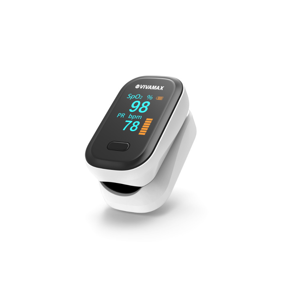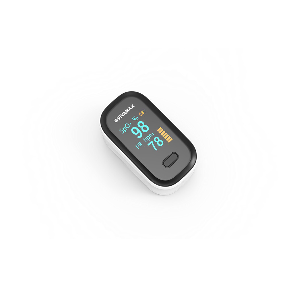Vivamax pulzoximéter: ujjra csíptethető, hordozható eszköz, amely a véroxigénszint és a pulzus mérésére szolgál. Színes OLED kijelzővel, grafikus impulzus kijelzéssel, figyelmeztető hanggal és automatikus kikapcsolással rendelkezik.
