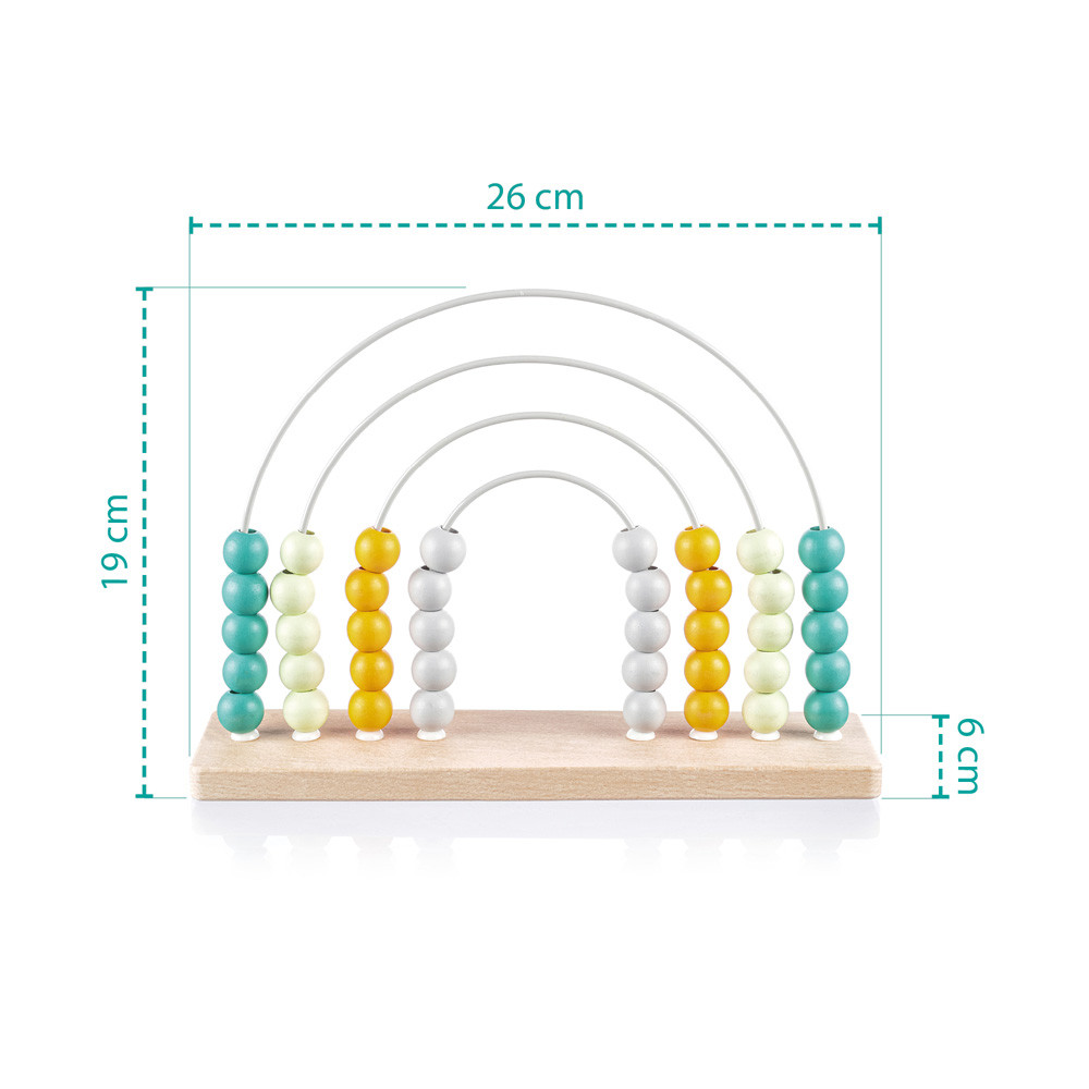 Tanulj meg számolni a világ legõsibb számolójátékával! A színes Fa abakusz készlet egy fa kerettel és drótokkal készült játék, ami az összeadást és a kivonást is megtanítja. A gyöngyöket jobbra-balra tudod húzni, minden dróton 10 golyót találsz, amik segítenek a számolás elsajátításában.