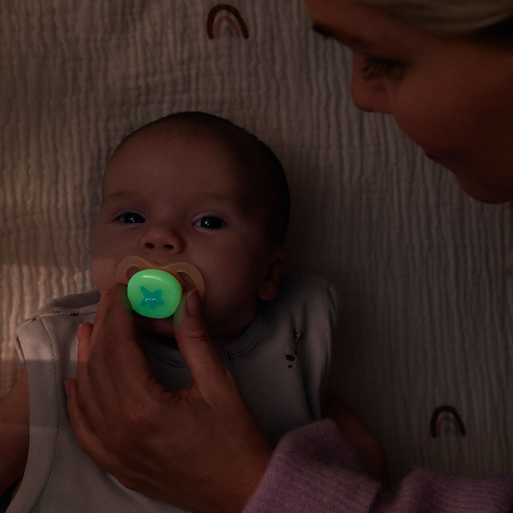 Az elsõ naptól megnyugtatja az újszülötteket. Legmegfelelõbb az illeszkedés, még éjszaka is. A lelki nyugalom biztosított az elsõ naptól újszülött gyermekének megnyugtatásához. A Philips Avent ultra start éjszakai cumi tökéletesen illeszkedik az újszülött gyermek szájához kicsi és könnyû kialakításának köszönhetõen. A sötétben fluoreszkáló kupak segítségével még éjszaka is könnyû megtalálni. Kényelmes és biztonságos • Sterilizálás és tárolás egyetlen praktikus tokban Az Ön gyermekének készült • Optimális a fogak egészséges fejlõdéséhez • Tökéletes illeszkedés az apró szájakhoz • 98%-os cumielfogadás* • A cumi élelmiszeripari minõségû szilikonból készült Az Ön szövetségese éjjel • Támogatja az újszülött alvási szokásait • Sötétben még sokáig fluoreszkál, miután a lámpákat lekapcsolták Figyelmeztetés: Sterilizátor / tároló doboz, a víz és a játszócumi 5 perc hûlés után is még mindig nagyon forró lehet. A sterilizáló csomagolásra vonatkozó figyelmeztetés: sterilizálás utáni használat elõtt mindig ellenõrizze a játszócumi hõmérsékletét. A nem megfelelõ vízmennyiség, a mikrohullámú készülék teljesítménye vagy a sterilizálási idõ csökkenése alacsonyabb sterilitáshoz vezethet, vagy károsíthatja a sterilizálót / tároló dobozt és a játszócumit. Csak Philips Avent cumit használjon, és a csomagolást tartsa távol gyermekétõl. Játszócumi • Gyermeke biztonsága érdekében • FIGYELMEZTETÉS! Használat elõtt mindig alaposan ellenõrizze. Húzogassa meg a terméket minden irányba. Amennyiben az anyag gyengülését vagy sérülését észleli, azonnal dobja ki. Ne helyezze a cumit a vízbe, majd a fagyasztóba. A cumi gyengülését okozhatja. Kizárólag a termékhez készült, EN 12586 szabványnak megfelelõ cumipántot használjon. Soha ne kössön másik szalagot vagy madzagot a cumira, mert az a gyermek nyaka köré tekeredve megfojthatja õt. A cumit ne kösse a gyermek nyaka köré, megfojthatja õt. Mindig gyõzõdjön meg róla, hogy a gyermek a korának megfelelõ cumit használja. A Philips Avent cumik különbözõ méretekben készülnek a korosztályoknak megfelelõen. Az elsõ használatot megelõzõen helyezze 5 percre lobogó vízbe, majd kivétel után hagyja, hogy a játszócumi lehûljön. Nyomja ki a cumiból a benne maradt vizet. Ez higiéniai okok miatt szükséges. Tisztítás és sterilizálás: Tisztítsa meg minden használat elõtt enyhén szappanos meleg vízben. A játszócumi tisztítására NE HASZNÁLJON súroló- vagy erõs vegyszereket / készítményeket. A tisztítószerek túlzott használata repedést okozhat a mûanyagon. Amennyiben ez elõfordul, azonnal cserélje le a játszócumit. A cumik alkalmasak az összes általánosan alkalmazott otthoni sterilizálási módszerre. Mielõtt a fertõtlenített alkotórészekhez hozzáérne, alaposan mosson kezet, és ügyeljen arra, hogy a munkafelületek tiszták legyenek. Használat: A termék kizárólag felnõtt felügyelete mellett használható. 4 hét használat után biztonsági és higiéniai okokból cserélje le a cumit. Ha a cumi megreked a gyermek szájában, NE IJEDJEN MEG; nem lehet lenyelni, és úgy van kialakítva, hogy kibírja az ilyen esetet. Körültekintõen, a lehetõ legóvatosabban vegye ki a gyermeke szájából. Soha ne mártsa a cumit édes anyagba, vagy gyógyszeres oldatba, mert ez fogszuvasodást idézhet elõ. Tárolás: A cumit a sterilizátorban / tároló dobozban vagy száraz zárt dobozban tárolja. Ne tárolja a cumit közvetlen napfény vagy hõforrás közelében, és ne hagyja a javasolt idõnél tovább fertõtlenítõ (sterilizáló) folyadékban, mert az gyengítheti a cumi anyagát. Szállító címe: Philips Consumer Lifestyle B.V., Tussendiepen 4, 9206 AD Drachten, The Netherlands, PH.CentralRegulatoryOfficer@philips.com - Fontos! A termék egészségvédelmi és higiéniai terméknek minõsül. Amennyiben a csomagolás felbontásra került, vagy a kipróbálás jelei látszódnak a terméken, úgy a 14 napos elállási jog érvényét veszíti a 45/2014. (II. 26.) korm. rendelet 29. § (1) bekezdése alapján.
